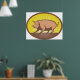 Retro Farm Pig with Sunburst Poster