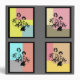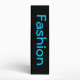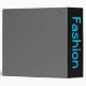 Gray and black background with four multi-colored rectangles with silhouettes of two models inside each. On the spine is customizable text in blue.