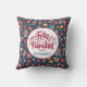 This fabulous Christmas folk art 16" x 16" blue pillow with a pattern of santas, gingerbread men, Christmas trees, ornaments, angels and presents that says Merry Christmas in Spanish "Feliz Navidad" and has your last name would look awesome on your couch, bed or chairs! It's so festive and will go with any Christmas decor - it's rustic yet retro and modern yet traditional! It'll look fantastic and add that little extra Christmas touch to your home!