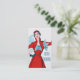 Vintage illustration of a woman modeling a dress from the mid 20th century. Red with 3/4 s;eeves and a tight waist. A lue and white striped bodice give a flair.