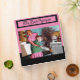 Retro fifties design. Black and pink colors. Illustration is of a fiifties' woman in pink dress and green apron. She's burned something and smoke is billowing out of the oven She's looking horrifies and trying to put out the fire. At the top is a box framed in black which says "My Best Recipes"
