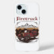 Discover our retro design of a fire truck in front of an impressive mountain range, perfect for all firefighters.