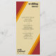 Red, orange and tan brown wedding reception menu with corner with stripe. Personalize it by adding your own meal list, the bride and groom's names and wedding anniversary date.