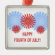 Fun and funky Retro Fireworks Premium Square Ornament featuring bold and unique firework graphics in red and light blue. This cool ornament would make a lovely keepsake or decoration when customized with the text of your choosing!