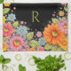 Retro Floral Colorful Monogram Black Kitchen Towel