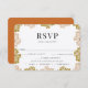 Boho Chic Retro Floral Frame, wedding RSVP cards with meal choice option. Back of card shown in orange can be customized.