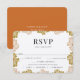 Boho Chic Retro Floral Frame, wedding RSVP cards with meal choice option. Back of card shown in orange can be customized.