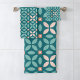 Retro Floral Geo Pattern Teal, Peach, Burnt Orange Bath Towel Set