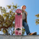 Cool retro 60s 70s vintage floral personalized skateboard design with simple magenta to pink monochromatic rainbow arch. With simple floral daisies and easy to use templates with custom cool groovy typography. Original artwork by artist Catherine Sweetman