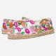 These shoes are amazing, well constructed, vivid color durable fabrics, can wear comfortably without socks…and pick your liner color. I ordered several and wore all Summer into Fall. A GREAT choice and hundreds of fabrics to choose from! Thanks so much to the designers…a real winner!! Order one size up to wear with socks. Usual size is snug at first but does stretch after several earrings. .