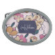 Retro Floral Pattern Navy Blue Script Custom Name Belt Buckle
