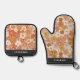 This retro oven mitt and pot holder features you text with floral patterns in pink and orange shades. Personalize it for your needs. You can find matching products at my store.