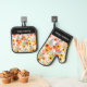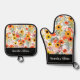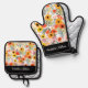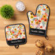 Retro Floral Pattern Personalized Name Kitchen Oven Mitt & Pot Holder Set