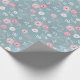 Retro floral pattern. Pink and white flowers on a muted grayish-blue background.
