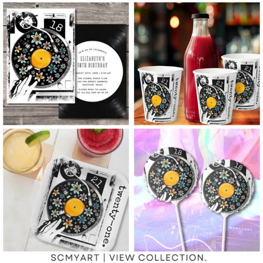 Looking for a retro personalized invitation for birthday party or other celebration? Look at our Retro Floral Personalized Vinyl Record Invitations! This retro vinyl design features, watercolor hand painted flowers, a distressed (digital effect) turnatable, You can customize the text.