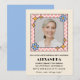 Retro Floral Photo 79th birthday invitation Blue