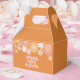 Retro inspired young wild and three third birthday favor boxes with 70's style flowers and boho fonts and colors.