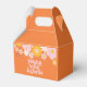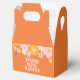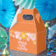 Retro inspired young wild and three third birthday favor boxes with 70's style flowers and boho fonts and colors.