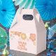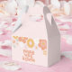 Retro inspired Young Wild and Three third birthday favor boxes with 70's style flowers and boho fonts and colors.