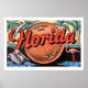 Exceptional vintage retro illustration - Greetings from Florida! We've repurposed it on a 20x30 print. The pelican, flamingo and tarpon fish are spectacular!
