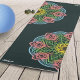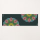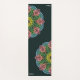 Dark green yoga mats feature a retro-styled flower mandala with personalized white name.
