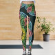 A unique pair of workout leggings or yoga pants for women featuring retro floral mandalas on dark green color.