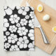 Retro Flower Pattern in White on Black Kitchen Towel