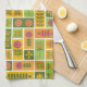 Add a pop of color to your kitchen with this retro modern dishtowel. Vivid greens, oranges, yellows and pink feature a variety of flowers and leaves in a patchwork pattern.