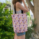 Retro Flowers Hearts Pattern Pink, Purple, Yellow Tote Bag