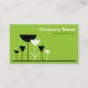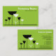 A business card template design with an abstract mid-century style flowers motif. Company name and business type etc on the front with name and other details on the reverse side with the same flowers motif.