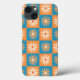 Retro Flowers on Blue and Orange Checkerboards Case-Mate iPhone Case