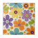 Retro Flowers Orange Lilac and Green Ceramic Tile