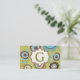 Cute retro flowers turquoise blue brown floral pattern custom monogram business cards, featuring a lovely pattern of abstract flowers in turquoise blue with brown outline on olive green background and your monogram in an ivory frame. Change text to personalize it and add your name or your company. A feminine, girly, floral design with a vintage feel to it.