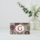 Cute retro flowers red, green grey floral pattern custom monogram business cards, featuring a lovely pattern of abstract flowers in red, green on grey background and your monogram in an ivory frame with brown outline. Change text to personalize it and add your name or your company. A feminine, girly, floral design with a vintage feel to it.