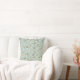 Pretty throw pillow features folk art retro style butterflies and little white flowers on light blue background.
