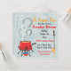 Retro fondue party invitation with a cool and modern feel. Bubbling and steaming pot of cheesy fondue and a skewer with a bread cube and dripping cheese against a retro background. Great for birthday, bachelorette, retirement or dinner parties. Hand drawn illustration by McBooboo.