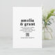 Plain white envelopes are included with paper invitations and will come to fit the invitation size you select. If you don’t need the envelopes, you may choose to not receive them by selecting the dropdown below "Envelopes" and choosing "None." If you’d like to have a design on your envelopes, you can browse all of these available envelopes to find the design that complements your Amelia Black White Modern Wedding Invitation.