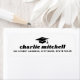 White or custom color graduation return address labels featuring a graduation cap with your name below in a bold retro style font. Black or custom color text on a black or custom color background.