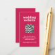Modern style wedding enclosure card featuring a simple and minimal layout with the header "wedding website" in a groovy retro font. Below are your event details in a sans serif font along with your QR code (optional) for guests to scan and easily RSVP online. The bright color scheme is vibrant Viva Magenta pink. The QR code may be removed and the fonts / colors may be changed in the design editing tool.