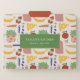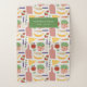 Set of file folders printed with a charming pattern of food and kitchen tools, like cheese, whisks, knives, olives, apples and more.