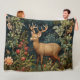 Retro Forest Deer William Morris Inspired Pattern Fleece Blanket