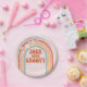 Retro inspired Four Ever Groovy 4th birthday party plates with hippie style rainbow, daisies and boho fonts and colors.
