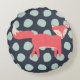 Retro Fox design items for the home, office, and personal use including dry erase boards, pillows, wallets, speakers, serving trays, buttons, cards, stickers, key chains, gift boxes and bags, candy favors, paper plates and magnets, bags, electronic device cases and sleeves, and so much more, all with a cute and colorful design of light blue rock orbs on dark blue, a light blue tree with red ball leaves, and an adorable red fox!