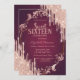 Retro Frame Rose Gold Glitter Drips Burgundy Invitation