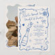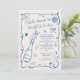 Retro French blue illustrated photo Engagement Invitation