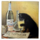 Famous poster black cat drinking absinthe has been around the world and remains one of the most beautiful and representative posters of 1900. Founded by brothers Mourgue for Bourgeois famous distillery in Pontarlier, it uses the same codes as the famous painting by Charles Maire for french Absinthe Pernod Fils, namely: table, glass, carafe, bottle, and especially the newspaper Pontarlier.