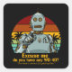 Retro funny robot needs oiling square sticker