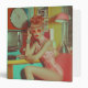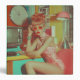 A striking retro-futuristic scene featuring a glamorous woman in a vibrant, vintage-inspired room with bold colors, eccentric accessories, and a nostalgic yet futuristic vibe.