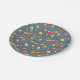 Retro galaxy and outer space graphics like planets, rocket ships, and astronauts make up this fun retro party plate pattern.