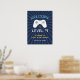 Welcome guests to your child's video game themed birthday party with this cool retro sign featuring a video game controller on a navy blue background with vintage digital style lettering. "Welcome to level [age]" appears at the top, with your child's name, party occasion and date beneath.
